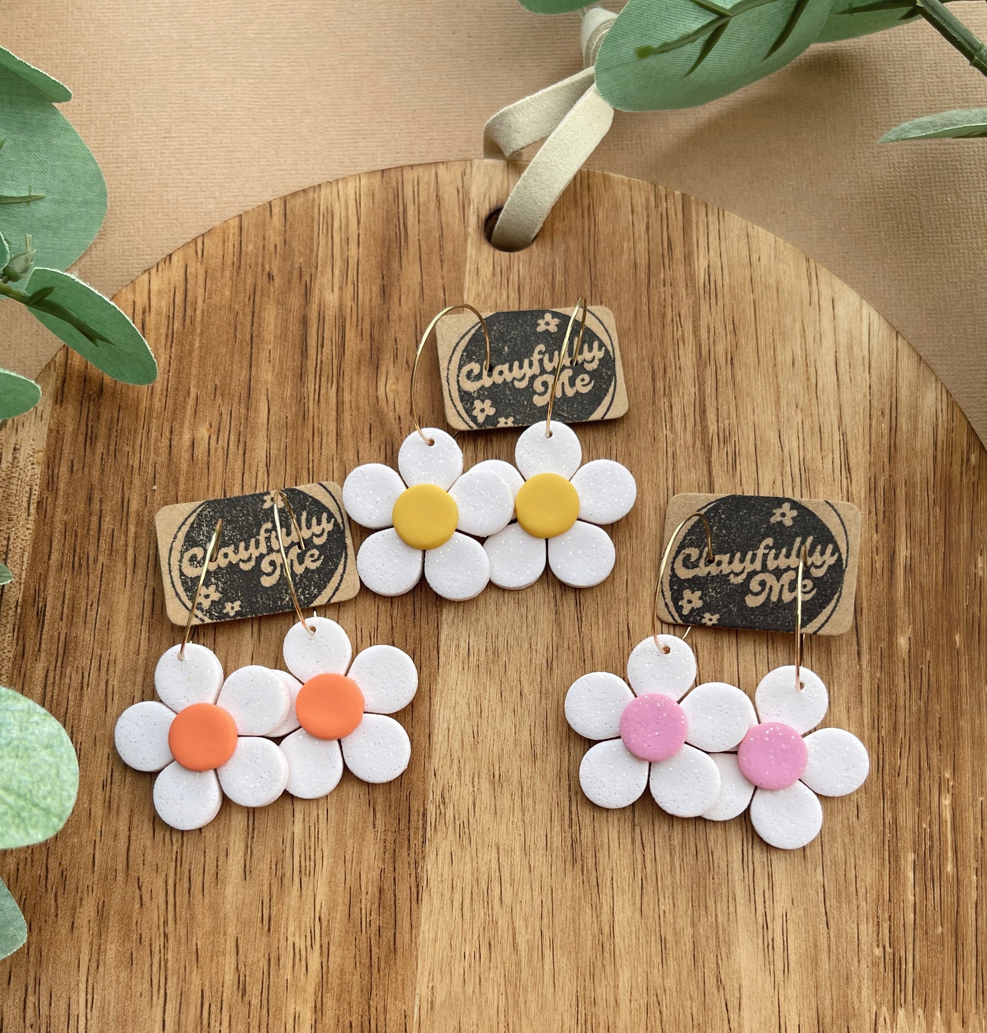 White Daisy Flower Hoops